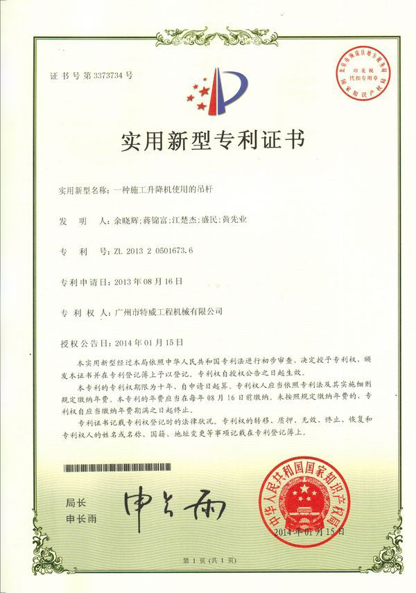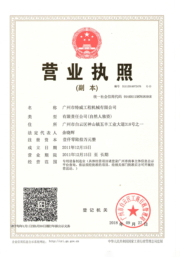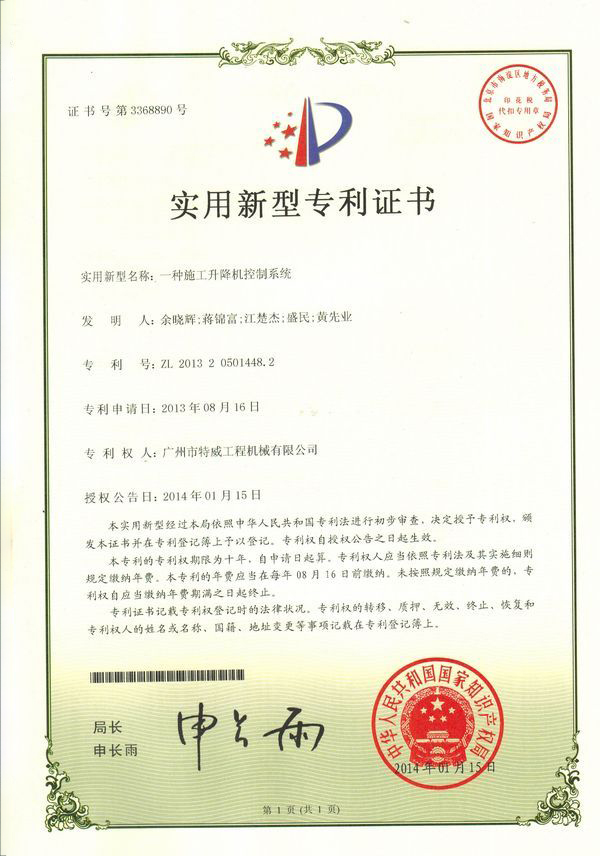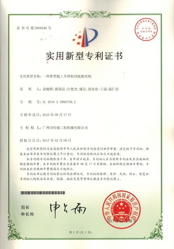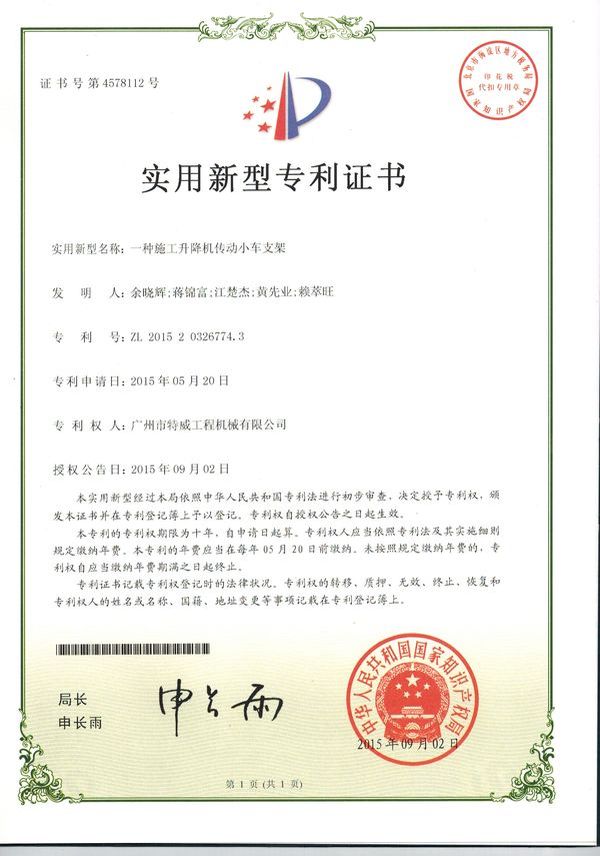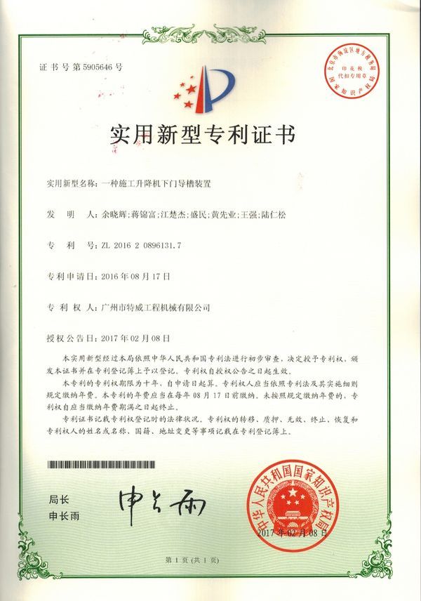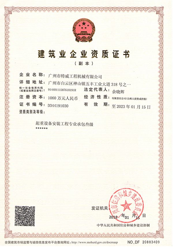 廣州市特威工程機械有限公司地處廣州市白云區神山鎮,廣清高速神山出口附近,是一家施工升降機的專業(yè)生產廠家。公司成立于2011年,占地100000多平方米,注冊資金1060萬元,現有員工300余人其中工程技術人員33人,高級技術人員52人。